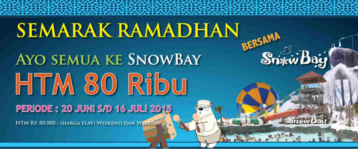Sebentar lagi kita memasuki bulan Ramadhan. Sudah punya rencana kegiatan belum selama bulan Ramadhan. Kalau belum tau mau ngapain kunjungi saja Snowbay. Selama bulan Juni – Juli 2015 ini kamu bisa mendapatkan harga promo tiket masuk hanya Rp 80.000. Harga tersebut berlaku flat setiap hari selama bulan Ramadhan.