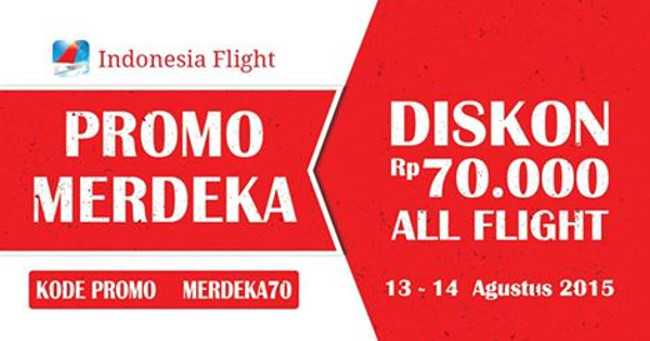 IndonesianFlight travel agen online yang berfokus pada aplikasi booking sistem di smartphone tidak ketinggalan merayakan hari kemerdekaan. Diskon tiket pesawat diberikan untuk penerbangan semua maskapai, semua rute, dan bebas memilih tanggal kapan saja. Besaran potongan harga tiket pesawat yang bisa kamu nikmati senilai Rp 70.000. Minimal transaksi untuk mendapatkan potongan harga ini sebesar Rp 700.000/ transaksi pembelian.