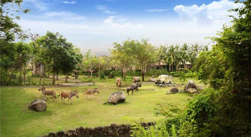 Fasilitas yang ditawarkan juga lengkap, kolam renang outdoor, spa, dan tenu saja kamar-kamar yang langsung berhadapan dengan alam liar Bali Safari. Salah satu kekurangan hotel ini tentu saja jaraknya yang jauh dari pemukiman karena terletak didalam Bali Safari Marine Park. Jadi agak susah jika ingin jajan diluar. Sangat cocok untuk penginapan 1 atau 2 hari jika ingin menikmati keseluruhan bali Safari Marine Park.